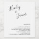 Étiquette mariage simple en noir et blanc avec vos noms dans un élégant script manuscrit en haut à gauche et une liste de faits amusants sur vous en alignement droit en bas à droite. Le design minimaliste est agrémenté d'une touche romantique grâce au lettrage à la main chic. Créez vos propres bouteilles de vin personnalisées pour les faveurs de mariage que vos invités voudront garder.