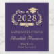 Élégant violet étiquettes de la fête du vin mettant en vedette "Classe de" dans une illustration dorée de la couronne de laurier, un casquette et diplôme de grade d'or, le nom du diplômé dans un script d'or élégant, et "Félicitations" et leur nom d'école dans la typographie de serif d'or classique.