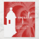 étiquette de Porto Rico coquito avec palmiers sur un arrière - plan rouge profond.