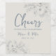 Elégant, vintage, simple, floral bleu mariage étiquette à vin avec dentelle périwinkle et écriture simple manuscrite. Santé!