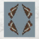 la photographie d'un papillon noir, brun et orange foncé sur un arrière - plan gris bleu fait de ce vin étiquette unique.