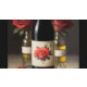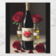 Une bouteille de vin joliment aménagée entourée de roses rouges vibrantes.