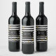 Étiquettes de vin chic et moderne, faits dans un motif à rayures horizontales noir et blanc, avec des graphiques de flocons de neige dorés. Une zone de texte rectangle noir, au milieu du étiquette, a un texte blanc personnalisé. Personnalisez le texte pour votre cadeau de vacances ou fête de Noël, sac cadeau vin assorti est disponible.