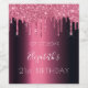 Un étiquette de vin pour une fête d'anniversaire girly et glamour de 21ème (ou tout âge). Un faux arrière - plan bordeaux à l'allure métallique avec une élégante parties scintillant rose cerise gouttes, la peinture goutte à goutte. Le texte : Le nom est écrit en blanc avec un script de style à la main moderne. Personnalisez et ajoutez un nom, 21 ans et une date.