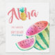 Fun fruité tropicale produit de fête avec des fruits d'aquarelle illustrés et des feuilles. Des teintes vives de rose, vert, jaune ensoleillé font de cet article pop! Grâce à la typographie moderne, votre événement se démarque par une foule et est inoubliable.