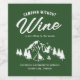 bachelorette de camping humoristique étiquettes avec un dessin d'un camping avec des montagnes, des arbres, un feu de bois, une tente, le drôle de dicton "camping sans vin, est juste assis dans les bois", et un modèle texte modifiable.