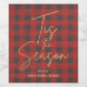 'Tis the Season text in a faux gold foil script and your names in chic lettering is featured on a red and gray buffalo plaid . These wine bottle labels are stylish for Christmas toxits or to label wine served at your holiday d'occasion.
