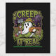 Pour un design d'Halloween, imaginez une nuit sombre et sinistre avec une pleine lune qui brille derrière des arbres tordus et nus. Une maison hantée se profile dans l'arrière - plan, ses fenêtres brillant de façon menaçante. Les chauves-souris survolent le ciel brumeux, tandis que les toiles de tonneaux survolent les branches. Au premier plan, des citrouilles taillés dans des "vallons-lanternes" menaçants longent un chemin tordu. Des ombres de fantômes et de squelettes se cachent autour, et des sorcières sur des broomsticks s'élèvent au-dessus. Toute la scène est frileuse et mystérieuse, avec des éclats d'orange des citrouille contrastant avec les tons sombres et déplaisants de la nuit.