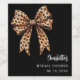 Un fond noir. Décoré avec un grand ruban avec impression léopard. Personnalisez et ajoutez le nom de la mariée et une date. Écriture manuscrite noire de style.