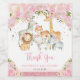Des étiquettes de vin sur le thème du safari avec un groupe de mignons animaux de la jungle, des fleurs roses rousses et des accents de parties scintillant en or faux rose. Objets correspondants disponibles dans notre magasin!