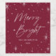 Des étiquettes de vin de vacances modernes avec "Merry and Bright" dans un script blanc écrit à la main et entouré d'une bordure d'étoiles avec un arrière - plan de canneberge/bordeaux. Personnalisez les étiquettes de vin joyeux et lumineux en ajoutant votre nom de famille et l'année ci-dessous.