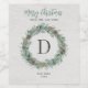 Étiquette Pour Bouteilles De Vin Joyeux Noël hiver verdure Monogramme couronne