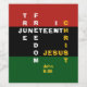 Design élégant JUNETEENTH pour les étiquettes de vin avec référence de la Bible chrétienne, montrant la citation inspirante TRUE FREEDOM IN CHRIST JESUS dans un format de mots croisés y compris JUNETEENTH, et est placé contre des panneaux rouges, noirs et verts (couleurs du DRAPEAU AFRICAIN PAN). Le texte principal est basé sur la référence de l'Écriture de Jean 8:36 - LUI QUI LE FILS (JÉSUS) LIBRE EST EN EFFET LIBRE. La référence biblique JOHN 8:36 est personnalisable, vous pouvez donc remplacer le texte par votre MONOGRAM ou votre NOM. Cela ferait un ajout idéal à vos fournitures de fête pour le 11 juin, le Mois de l'histoire des Noirs, Noël, Anniversaires et tout au long de l'année. Soyez prêt à partager votre foi, car cela ferait aussi un grand début de conversation.