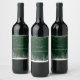 Pins de mariage d'hiver Les étiquettes de vin de Snowflakes ont un bel arrière - plan vert foncé avec des pins enneigés, des arbres blancs d'hiver, des flocons de neige et un joli effet étincelant suspendu. Personnalisez avec vos informations, customisez pour votre cadeau de Noël / de vacances.