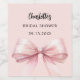 Un fond de couleur rose blush. Décoré avec un grand nœud. Personnalisez et ajoutez le nom de la mariée et une date. Écriture manuscrite noire de style cursif.