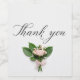 Un joli "Merci" écrit à la main en caractères gras et fluides occupe le centre de l'image. Sous le texte, un délicat arrangement de fleurs élégantes dans des tons pastel doux encadre le message, créant une composition visuellement attrayante et chaleureuse.