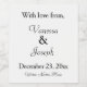 Elégant arrière - plan blanc croustillant avec texte noir réception de mariage favorise. Avec Amour de, Personnalisez les prénoms de mariée et de mariée de Groom, Date Mariage. Ajoutez le nom du vin en bas ou supprimez. Dessins de TamiraZDesigns.