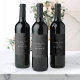 Minimalist personalized wedding wine bottle labels featuring modern typography monogram initials and name in matte black color design.