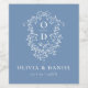 Étiquette Pour Bouteilles De Vin Monogramme bleu foncé Mariage Floral Crest