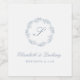 Cet élégant design présente une couronne de feuillage d'art bleu poussiéreuse entourant un monogramme initial en écriture classique. Personnalisez-le avec les noms du couple et la date du mariage.