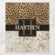 Des taches de léopard Brown et du marbre de couleur riche sur le fond. Le centre est laissé pour la personnalisation / personnalisation avec un nom de famille ou nom de famille, et monogramme initial. Design élégant et élégant avec un motif en peau de chat sauvage tendance qui a l'air vintage et antique.