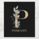 Lettre P monogramme floral. Lettre P en texture brun doré accentué de feuilles verts composés d'aquarelle, fleurs de fleurs et poussière d'or. Personnalisé avec nom dans la police correspondante.