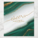 Cet ensemble de design mariage, avec son motif abstrait d'ondulations fluides et de veines d'or scintillant, rappelle les formations rocheuses et les gemmes étincelantes. La palette de couleurs à bijoux dans les tons vert émeraude ajoute à l'attrait. Le étiquette de vin montré ici a tout ce qui précède avec modèle pour ajouter facilement un message, les noms et la date mariage. Recherchez ID903 pour voir d'autres choix de couleurs et coordonner des pièces pour cette collection de mariages unique.