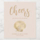 Illustration vintage d'un coquillage de coquillages orne ce étiquette de vin de mariage côtier élégant, avec un texte de couleur or sur un arrière - plan rose vif. Le mot "Cheers" apparaît dans un élégant script d'écriture manuscrite, suivi par "à joyily ever after" dans la police sans serif. Ajoutez les noms du couple et la date du mariage ci-dessous.