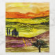 Sous le soleil toscan se trouve une peinture de Charlotte Foster, faite avec des encres d'alcool, sur un carrelage. C’est la Toscane au coucher du soleil, avec des peupliers dans le paysage.
