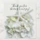 Étiquettes de bouteilles de vin à personnaliser pour un mariage. Des fleurs blanches et une grande étoile de mer sont le design sur les étiquettes de bouteilles plus grandes. Customisez le texte à deux endroits avec "merci" aux invités et les noms du couple. Idéal pour une fête à thème de plage ou de mariage blanc.
