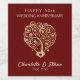 Un mignon arbre en feuille d'or aux coeurs tourbillonnants sur un arrière - plan rouge foncé. Vous pouvez modifier l'année anniversaire et l'arrière - plan