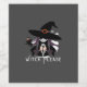 Un design ludique et puny avec une silhouette de sorcière élégante et le texte "Witch Please" en lettrage éffrayant et élégant.