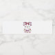 Étiquette de bouteille d'eau rustique mariage avec illustration dessinée à la main de rubans magenta avec des fleurs.