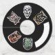 Les 5 personnages d'Halloween classiques sur une étiquette en papier de fête d'Halloween en option sombre. Serez-vous la sorcière, le diable, le pirate, le chat ou le crâne à votre fête d'Halloween ?
