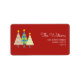 Joli, dessin animé, moderne rétro rouge marque d'adresse de retour de Noël, avec de mignons pins colorés et écriture manuscrite tendance.