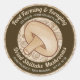 Icône de champignon Shiitake dans le style d'ombrage de bois coupé. Motif de champignons sans couture arrière - plan. Quatre champs de texte à customiser.