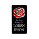 Un étiquette à assiette avec un motif rose dessiné à la main, entrez votre nom pour customiser. Peut également être customisé plus loin.