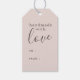 Étiquette-cadeau personnalisée avec une typographie "Fabriquée avec Amour" et un motif zigzag rose poussiéreuse et or.