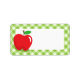 Étiquettes blancs avec une belle pomme rouge à la feuille verte. Autour du bord se trouve une bordure verte en vichy motif. Ajoutez votre propre texte.