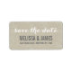 Beige Rustic Linen Script Wedding Enregistrer le Étiquette de adresse Date. Design par Elke Clarke© pour MonogramGallery imprimé par Zazzle. Envoyez vos cartes de dates à vos amis et votre famille en utilisant ce étiquette simple et magnifique avec les mots "enregistrer la date" écrit dans une main blanche écriture typographie script texte superposition. Effet photo imprimé de lin beige arrière - plan. Autres couleurs disponibles.