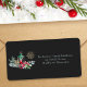 Complétez vos mailings de vacances avec cette élégante étiquette d'adresse de retour avec une lanterne vintage vert aquarelle, entourée de branches de pin, de baies rouges et d'un flocon de neige en or doux, le tout contre un arrière - plan noir avec la neige tombante. L'agencement associe le charme de Noël minimaliste hiver non photo joyeux avec le raffinement motif scandinave de Noël nordique. Parfait pour apparier avec des cartes, des enveloppes ou des étiquettes cadeaux assorties. Customisez le nom et l'adresse pour créer une suite de saison polie.