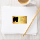Profil silhouette de chien Spitz en noir américain Eskimo chien, Poméranien, race de type Samoyed. Placez-vous sur deux tons jaune doré et ombragé. Personnalisez avec votre nom et votre adresse en majuscules noires.