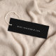 Vêtements sur mesure élégants, accessoires, bijoux, boutique, etc., étiquette suspendue noire avec votre nom ou marque mise en valeur dans une écriture de signature blanche stylisée. Ajoutez du texte supplémentaire ci-dessous et au dos en lettrage blanc moderne simple. Veuillez noter que Zazzle ne perce pas le trou.