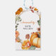 Étiquette suspendue personnalisée thème automne par Votre Nom d'Entreprise dans une couronne de fleurs et citrouilles pastel. Personnalisez facilement cette étiquette professionnelle avec votre propre nom. Parfait pour les artisans, les boulangers et les artistes pour vendre leurs produits pendant la saison d'automne ou de Thanksgiving.