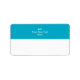 Étiquette Turquoise avec zone blanche et texte.