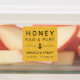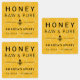 Étiquettes de miel moderne pour votre chapiaire en jaune doré avec un motif de nid d'abeille, des polices propres et une icône d'abeille moderne.
