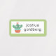 Cactus autocollants de vêtements pour vos enfants avec de mignons cactus assis dans des pots de fleurs et portant des lunettes. Chaque cactus a une fleur sur la tête comme une petite couronne de prince. Les étiquettes autocollants ont des bordures turquoises et vertes.