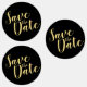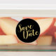 Script moderne Enregistrer la date Étiquettes avec le titre "Enregistrer la date" en or police de script moderne sur arrière - plan noir. Remarque : Les détails du papier sont simulés dans l'illustration. Il n'y aura pas de métal sur ce produit.