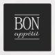 BON APPÉTIT Étiquettes alimentaires. Feuilles d'autocollants noirs imperméables à l'eau avec un blanc BON APPÉTIT texte de citation alimentaire imprimé. Disponible en forme carré et ronde.