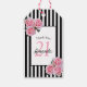 Étiquettes-cadeau 21e anniversaire flores roses noir blanc rayures